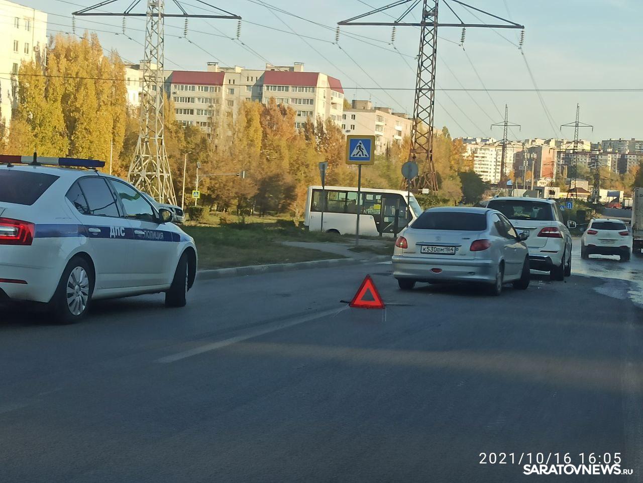 В настоящее время в Саратове на улице Тархова случилась авария: столкнулись "Пежо" и "Мерседес".