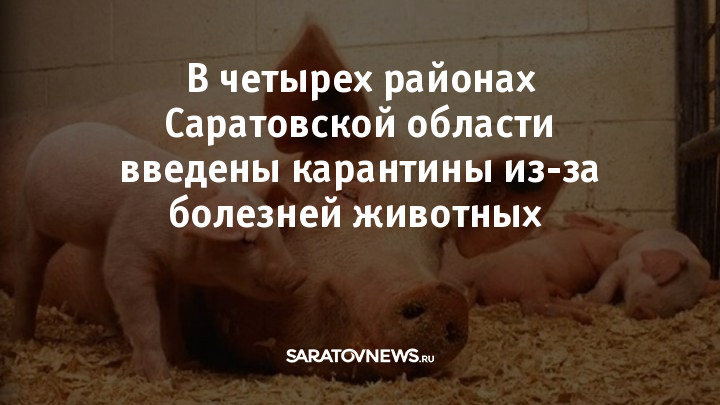 Так, в четырех районах действуют карантины из-за болезней животных: с 25 октября в селе Новореченское Питерского района из-за бешенства; с 27 октября в селе Квасниковка Энгельсского района из-за лейкоза. В двух районах причиной карантина стал птичий грипп: в районе села Толстовка Краснопартизанского района (с 26 октября) и в селе Верхазовка Дергачевского района (с 3 ноября).