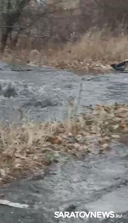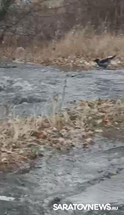 Саратовцы жалуются на разлив воды в Солнечном микрорайне города. Они сняли видео, где видно, как бурлит поток воды недалеко от жилых домов, а на сухом участке земли сидит ворона и пьет из бурного ручья.