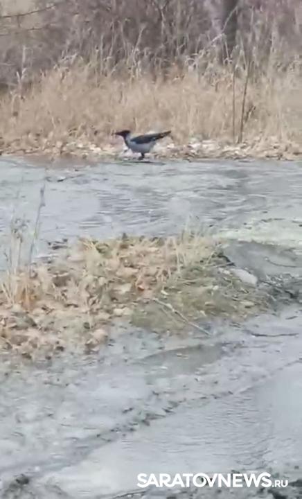 Видео опубликовали в соцсетях. Кто-то пошутил в комментариях, что купальный сезон для ворон открыт.
