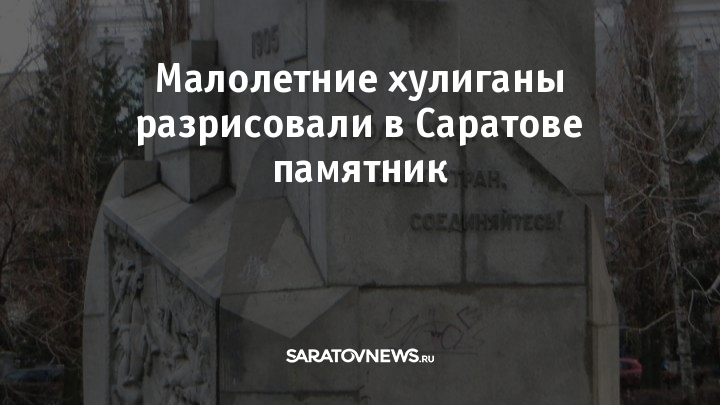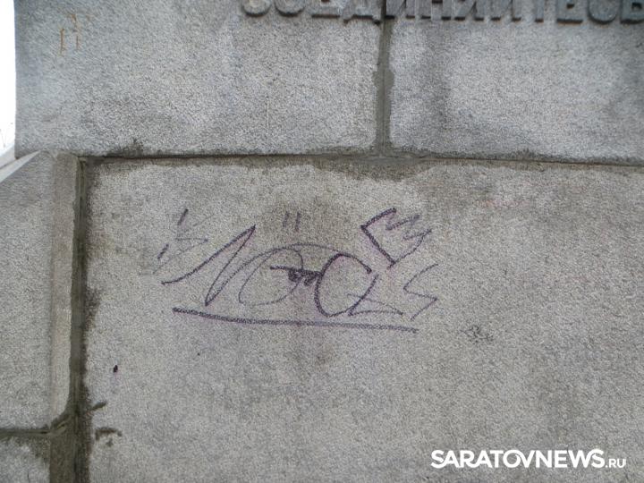 В Саратове малолетние вандалы разрисовали объект культурного наследия федерального значения - памятника борцам революции 1905 года. Он расположен на Площади 1905 года со стороны пересечения улиц Рахова и 2-я Садовая.