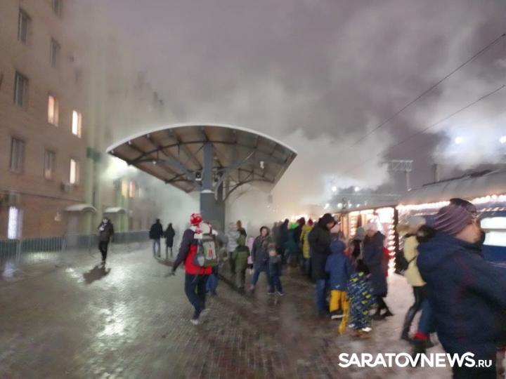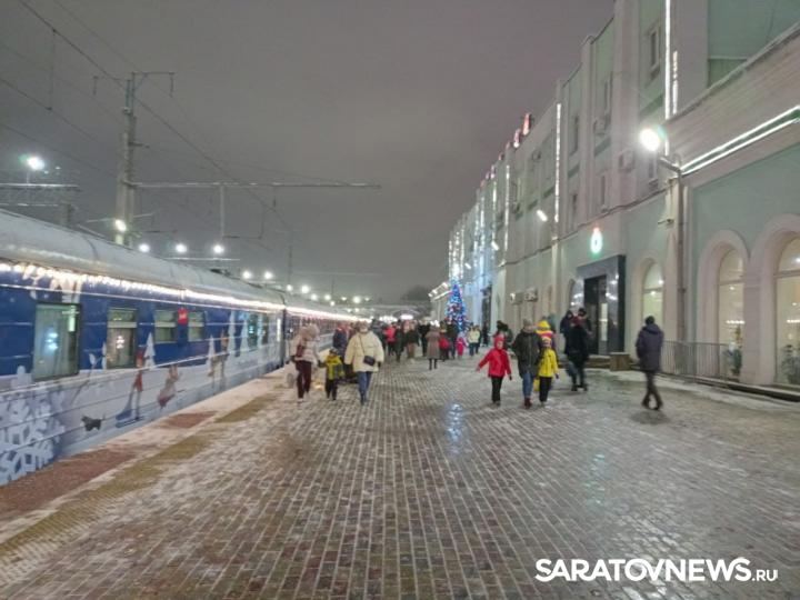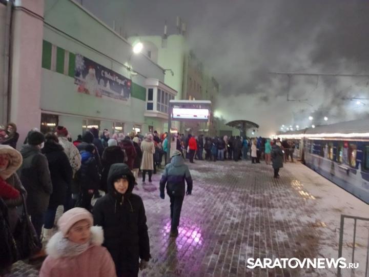 Саратов стал 15-м городом, который посетил новогодний поезд из 37 запланированных. На странице поезда Деда Мороза в соцсети отмечено, что в Саратове был рекорд по посещаемости. Это было заметно. На перроне было не пробиться к бесплатным вагонам. Чтобы попасть в ретро-вагон, нужно было прождать в очереди порядка часа. Чуть меньшие очереди стояли в вагон-ресторан и в вагон с сувенирами.