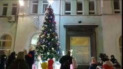 У вокзала возвышалась наряженная елка. Вдоль новогоднего состава прохаживались ростовые куклы зебры, кота, снеговиков, с которыми можно было фотографироваться.