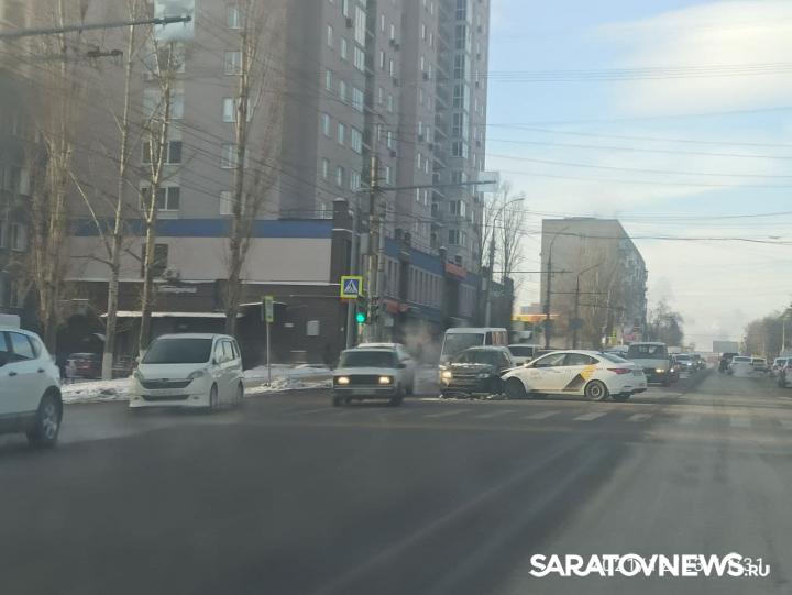 О происшествии сообщили саратовские водители. По их словам, таксист поворачивал на Дегтярную и не уступил дорогу отечественному авто. В результате аварии машины блокировали левую среднюю полосу дороги. На Чернышевского собирается пробка.