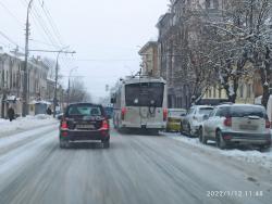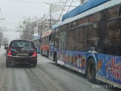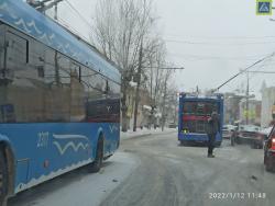 По словам очевидцев, у троллейбуса возникли проблемы с пантографом. Электротрнаспорт заблокировал движение транспорта на улице Московской.