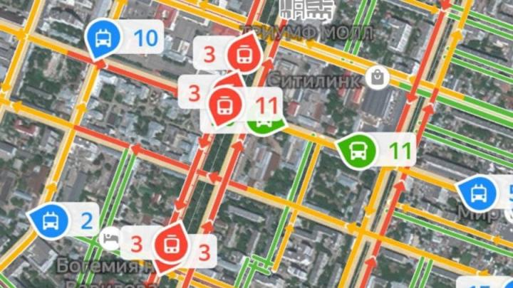 В настоящее время, согласно сервису «Яндекс. Карты», в Саратове наблюдаются пробки в 7 баллов.