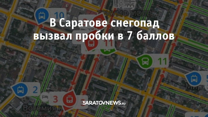 Затруднено движение на улицах Чапаева, Рахова, Вольской, Астраханской, Новоузенской, Соколовой, Танкистов, проспекту 50-лет Октября (на последней магистрали пробка образовалась из-за аварии).