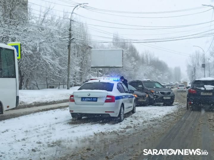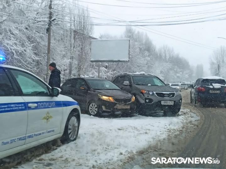 Сегодня, 13 января, в Солнечном микрорайоне Саратова случилось ДТП с двумя иномарками.