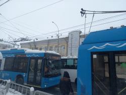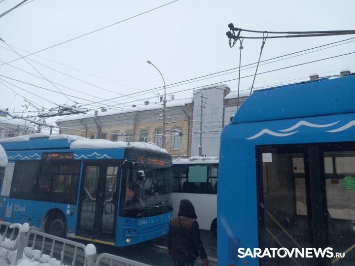 По этой причине автобусы из Энгельса объезжают троллейбусы, двигаясь по встречной полосе. Люди выходят в сугробы снега. Один автобус перегородил ул.Московскую. Скорой помощи, ехавшей в сторону Волги, пришлось включать сирену, чтобы ей уступили дорогу.