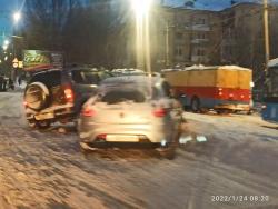 На проспекте 50 лет Октября столкнулись автомобили Chevrolet Niva и Volkswagen. Машины хотели уйти от удара и в результате оказались на обочине в сугробе. Об этом сообщили свидетели происшествия.