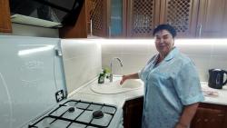 Ольга Николаевна Живолуп проживает на ул. Степной, 28. На встрече говорили с ней о качестве коммунальных услуг. В крайнем подъезде были проблемы с отоплением. Что касается горячей воды, она была только в ванных. А на кухнях – едва теплая.