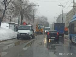 На улице Чернышевского, не доезжая улицы Радищева, произошла коммунальная авария. Работники ООО «КВС» разрыли котлован на полосе движения общественного транспорта. В результате, чтобы маршруткам, автобусам, троллейбусам объехать место аварии, нужно выезжать на встречку. Таким образом, движение на этом участке затруднено. Об этом сообщают очевидцы.