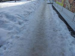 Улица Тельмана – одна из центральных магистралей города. Ее тротуары превратились в сплошной каток! Причем, надо отдать должное чиновникам, на некоторых «муниципальных» участках дорожки посыпаны песком, а вот около многочисленных магазинчиков – нет! Такая же ситуация на улице Волоха.