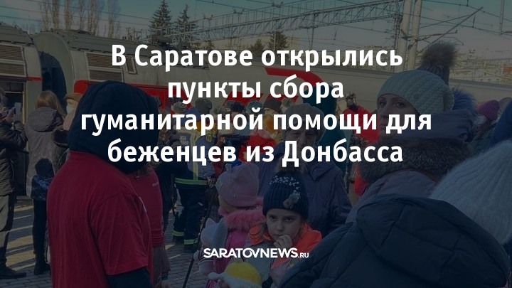 В Саратове работают пункты сбора гуманитарной помощи для прибывших из ДНР и ЛНР. Принимаются продукты длительного срока хранения: кофе, чай, средства гигиены для взрослых и детей, сухое детское питание, бытовая химия, одноразовая посуда, бутилированная вода, средства индивидуальной защиты, постельное белье, бытовые электроприборы, женские и детские вещи, канцелярские принадлежности и детские игрушки.