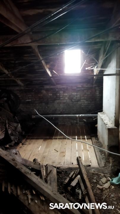 В объекте культурного наследия, которым признан дом работников судоремонтного завода, крыша, чердак и подвалы находятся в аварийном состоянии. Во многих квартирах потолки провалились, а во втором подъезде в одной из квартир потолок отсутствует вовсе. Сквозь щели между досками видно небо.