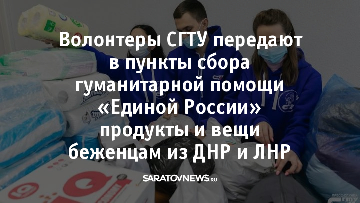 Напомним, по их инициативе пункт сбора гуманитарной помощи был открыт в Политехе 21 февраля. СГТУ всецело поддержало инициативу реготделения всероссийской политической партии «Единая Россия» для оказания поддержки тем, кто был вынужден покинуть свой дом – жителям, эвакуированным из ДНР и ЛНР.