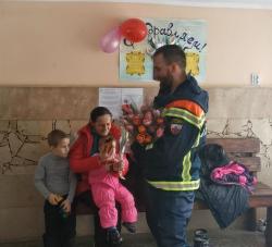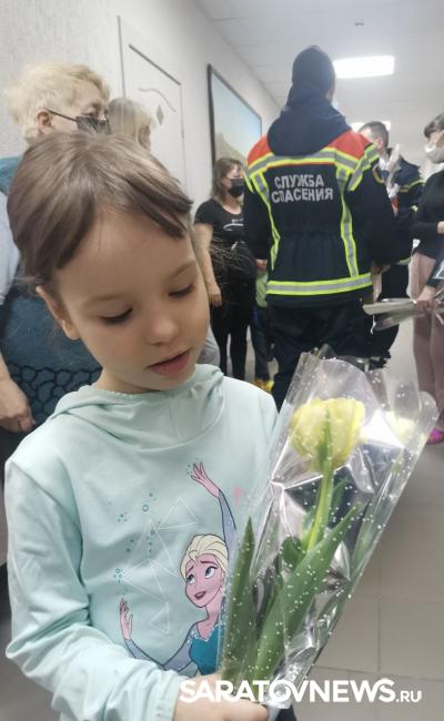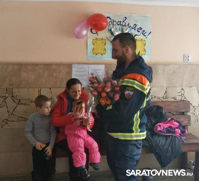 Сотрудники управления безопасности жизнедеятельности и Саратовской областной службы спасения поздравили с 8 марта женщин, прибывших Луганской и Донецкой народных республик.