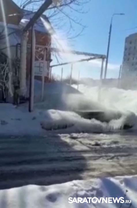 Жильцы дома № 12Б на улице Антонова в Ленинском районе Саратова жалуются на прорыв трубы над дорогой рядом с домом. Вода льется третий день. Саратовцы недоумевают.