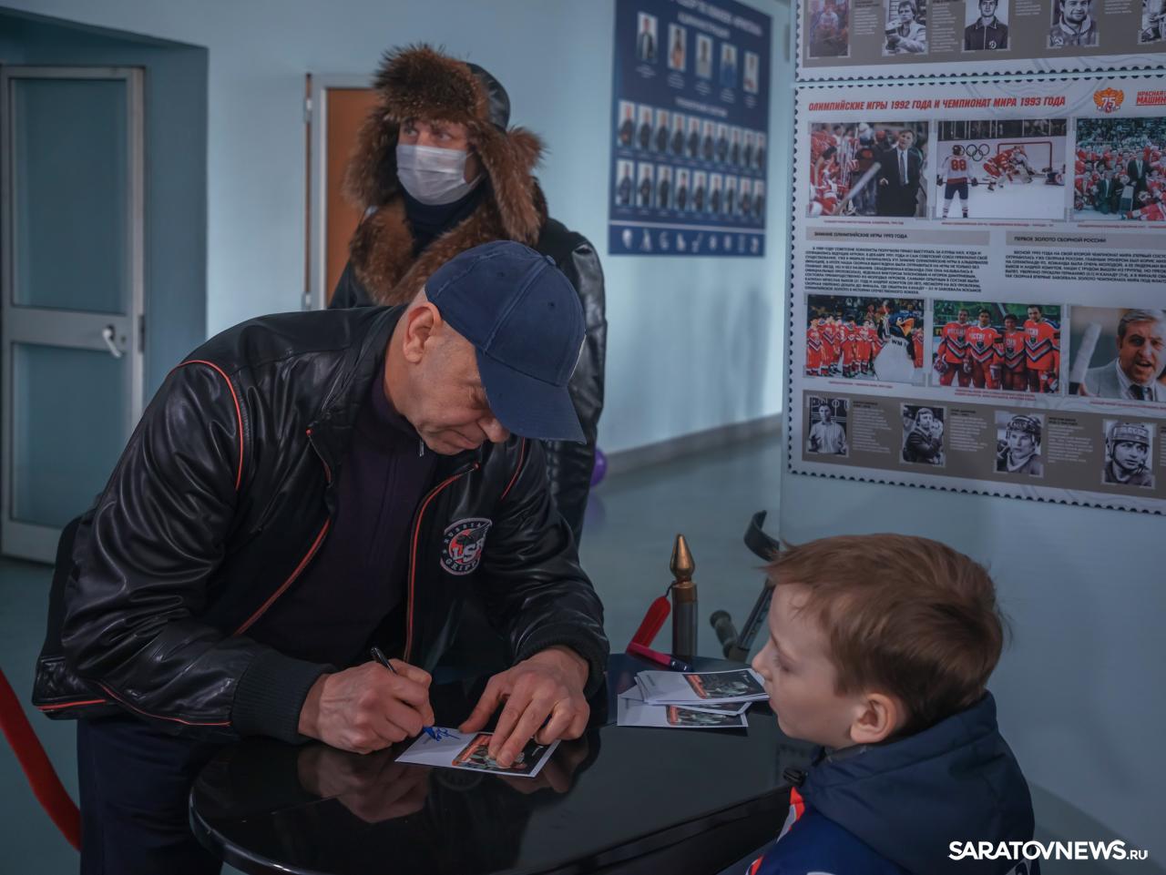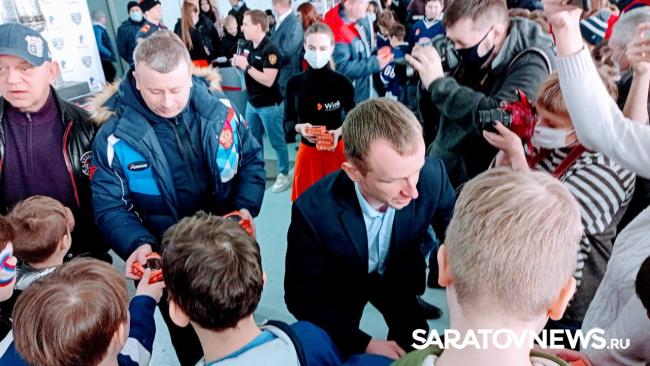 Почетные гости вручили памятные шайбы игрокам детских хоккейных команд. Также в фойе ледового дворца воспитанник саратовской школы «Кристалл», финалист кубка Канады 1987, чемпион СССР 1990, чемпион СНГ 1992 Анатолий Федотов проводил автограф-сессию. Его подпись мог также получить любой желающий. Юные спортсмены с удовольствием получали автограф одного из лучших защитников в истории саратовского хоккея.