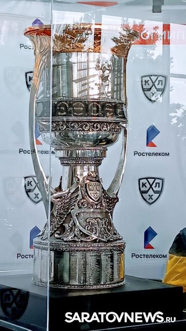 Знаменитый трофей привезли в Саратов спецтранспортом в сопровождении охраны. В пути приз находился в специальном ударопрочном водонепроницаемом кофре. Кубок весит 25 килограммов, он изготовлен из серебра 925-й пробы, а снаружи покрыт позолотой. На одной его стороне изображены Юрий Гагарин и летящая комета, на другой — хоккеист. Обрамляют чашу шайбы с именами команд-победителей.