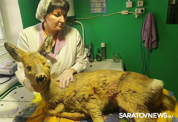 Ветеринары Базарного Карабулака спасли раненого теленка косули.