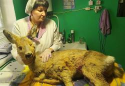 В минувшую среду, 23 марта, на Базарно-Карабулакскую станцию по борьбе с болезнями животных егери доставили раненого детеныша косули. Врачи ушили раны животному, используя инфузионную терапию с противошоковыми растворами.