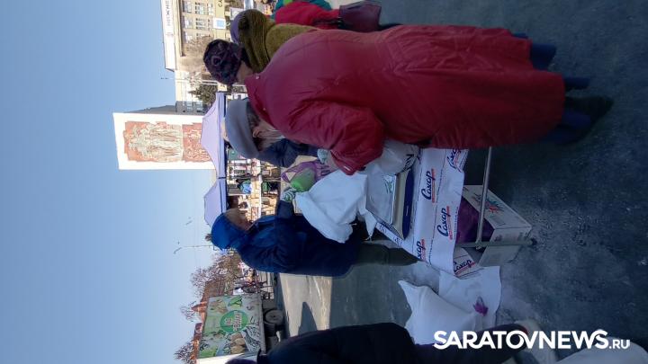 К концу ярмарочной торговли в фургоне ещё оставались мешки сахара, ажиотажа уже не было, стояли лишь небольшие группы людей. На вес был распродан весь продукт. Оставался лишь один килограмм в пакете, и за него продавец запросила 92 рубля. Саратовцы отказывались его покупать и шли к грузовику.