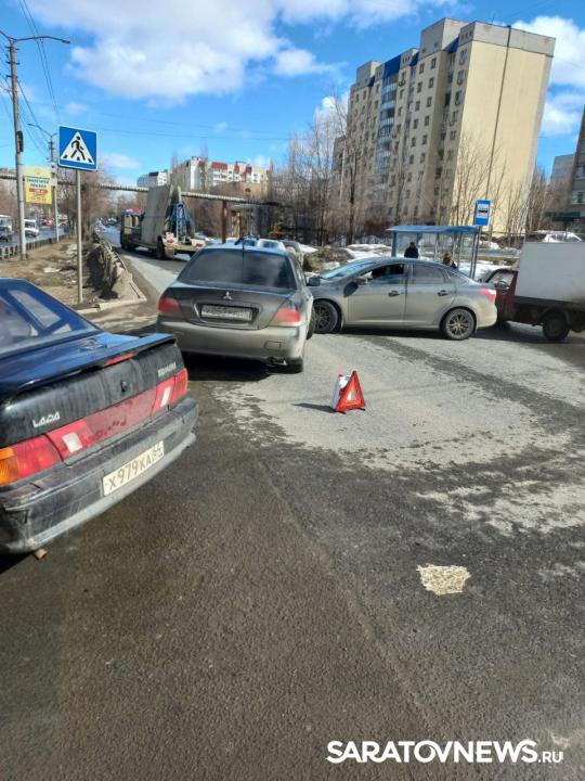 Несколько минут назад в Саратове на улице Тархова столкнулись Ford и Mitsubishi Lancer. Машины развернуло поперек дороги, они блокировали движение на данной магистрали.