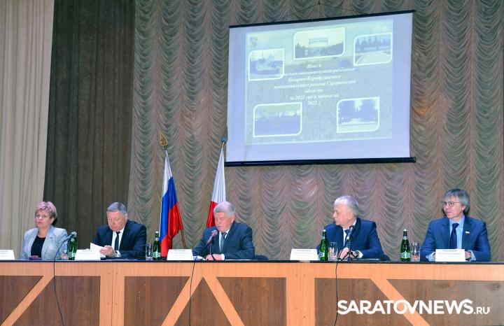 В Базарном Карабулаке состоялось заседание актива района, которое посвятили обсуждению итогов социально-экономического развития района в 2021 году. Участие в мероприятии приняли руководитель облдумы Александр Романов (фракция «Единая Россия»), управляющий делами Правительства Саратовской области Павел Точилкин, депутат Вадим Рогожин (фракция «Единая Россия»).