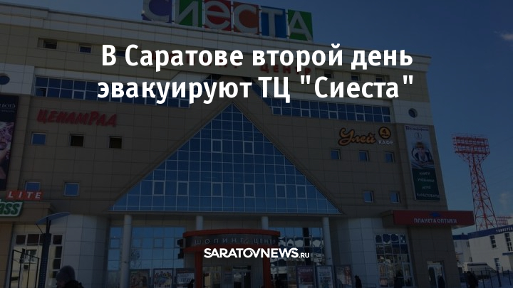 В эти минуты саратовцы сообщают об эвакуации торгового центра "Сиеста", расположенного на 3-й Дачной в Ленинском районе Саратова. Посетителей попросили покинуть четырехэтажное здание. По словам очевидцев, к тому моменту уже не работали эскалаторы и лифты. Люди спешно выходили из торгового комплекса. Сложнее пришлось тем, кто находился в спортивных залах центра или душевых, им еще требовалось время, чтобы одеться.