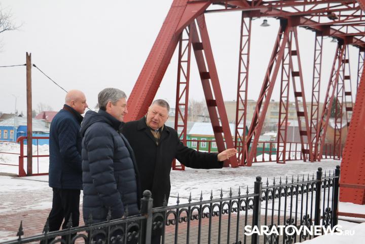 Спикеру рассказали о благоустройстве территории у одной из главных достопримечательностей Петровска – железного моста. Реставрация сооружения завершилась. Рядом располагается зона отдыха, где установлены скамейки и беседка, уличное освещение, система видеонаблюдения, которая позволит не допустить актов вандализма.