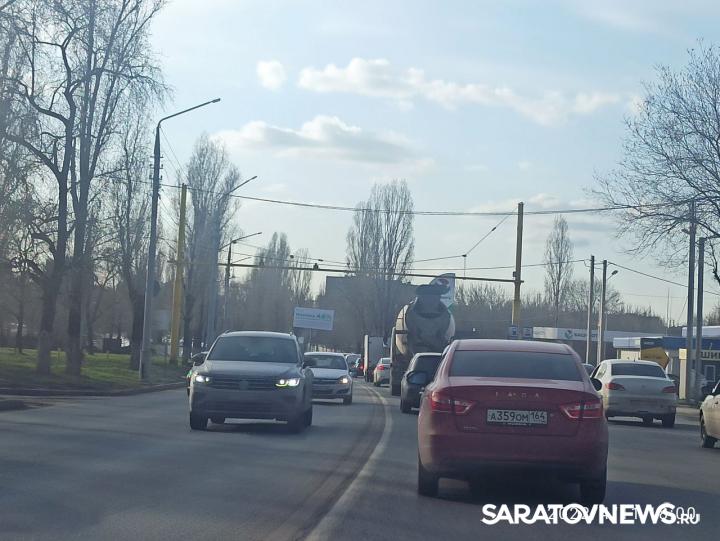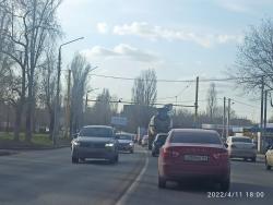 Машины заняли среднюю и левую полосы. В сторону проспекта Строителей собирается пробка.