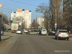 Сегодня, 13 апреля, на 6-м квартале произошло ДТП. На улице Тархова столкнулись автомобиль Mazda и мини-грузовик Toyota. В результате удара Mazda развернуло поперек дороги.