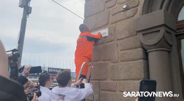 В Саратове прошла церемония смены аншлагов на главной пешеходной улице - проспекте, который теперь носит имя Петра Аркадьевича Столыпина. Не обошлось без скандала.