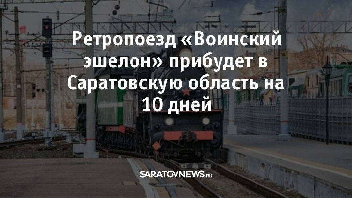 С 12 по 21 мая в Саратовской области курсировать ретропоезд «Воинский эшелон». Он состоит из двух действующих паровозов (Эр-769-17 и Эр-797-15) и шести железнодорожных платформ с техникой времен Великой Отечественной войны. Также в его составе вагон-теплушка, вагон-музей и сценическая платформа.