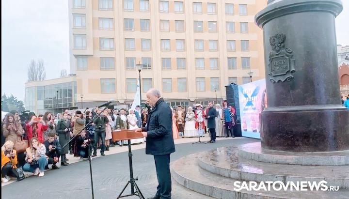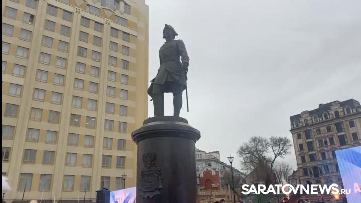 Сегодня, 22 апреля, в Саратове под дождем состоялась торжественная церемония открытия памятника Петру I.