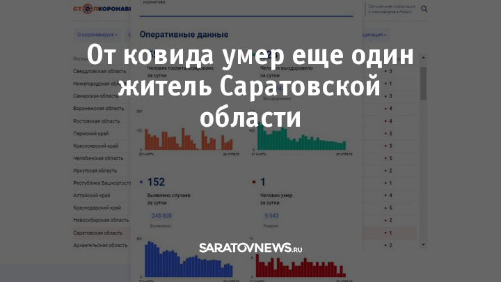Сегодня, 29 апреля, появилась новая информация по смертности от COVID-19 в Саратовской области.