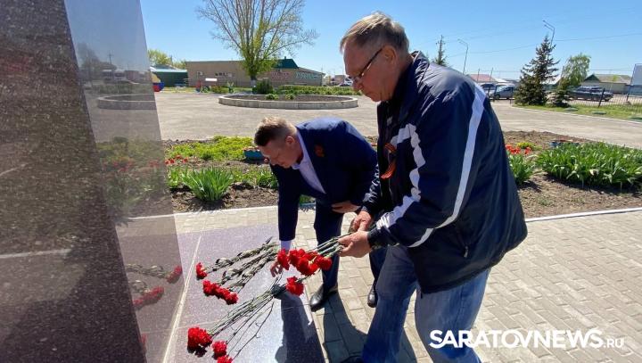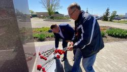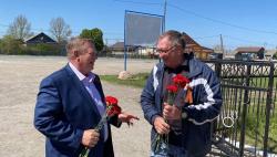 Вместе с родственником героя, Владимиром Клочковым, и земляками возложили цветы к мемориалу.