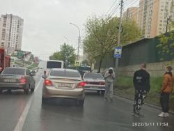 Машины полностью перегородили две полосы движения. Чтобы объехать участников аварии, транспорту нужно выезжать на встречную полосу.