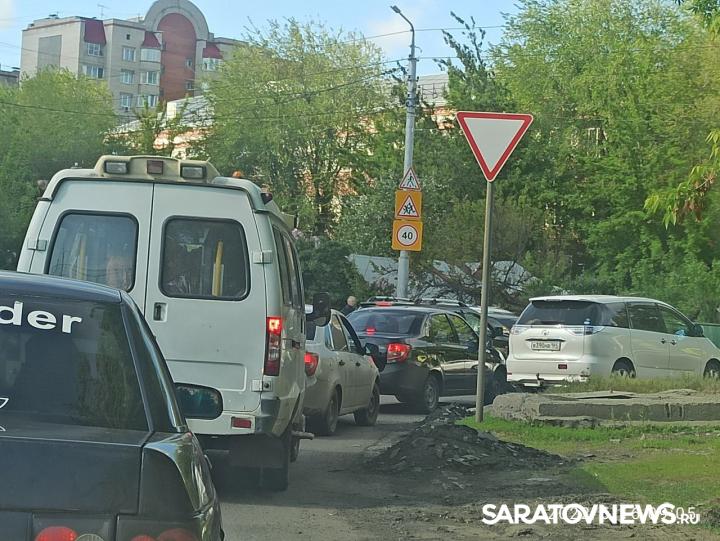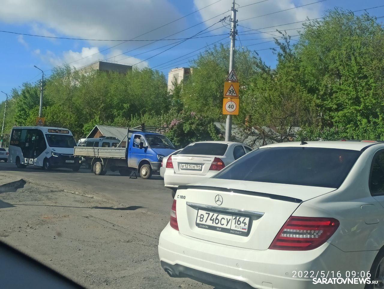 Сегодня, 16 мая, в Кировском районе Саратова (район Стрелки) произошло ДТП, собравшее серьезную пробку.