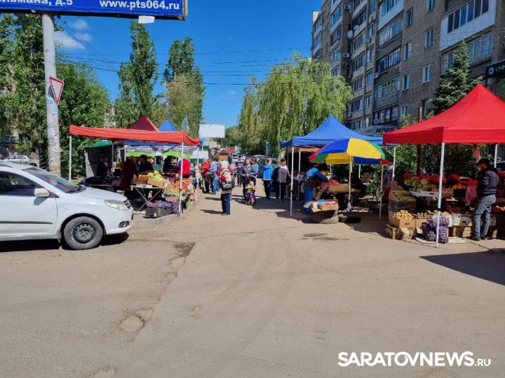 Жители Энгельса жалуются на стихийный рынок, который уже не первый год подряд возникает в теплое время года у дома №3 по проспекту Строителей.
