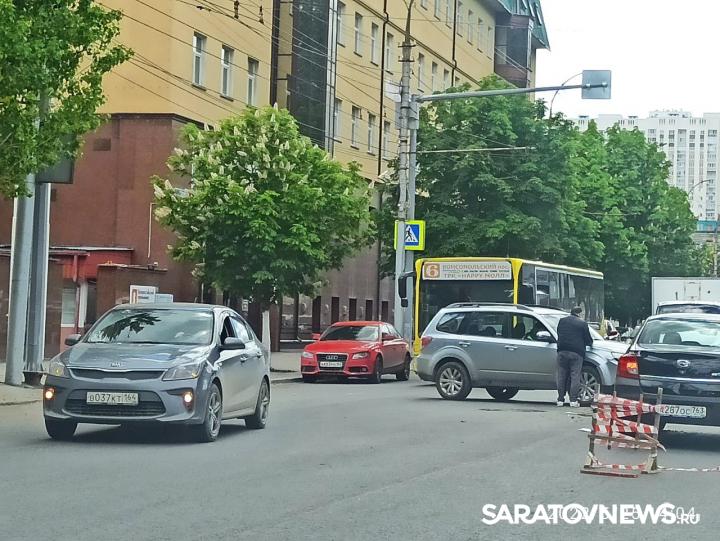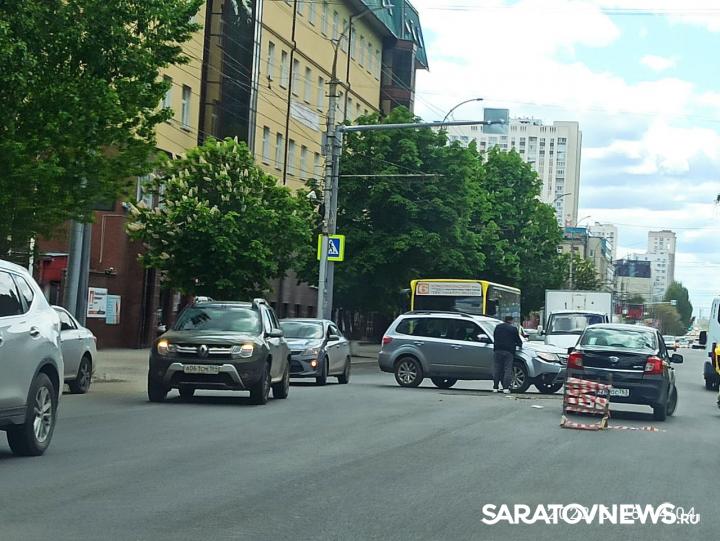 На пересечении улиц Чернывшевского и Новоузенской столкнулись автомобили Subaru и Datsun. В результате удара Subaru развернуло поперек дороги, а Datsun откинуло в противоположную сторону - по направлению к улице Радищева.