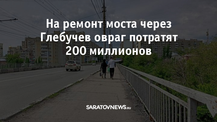 В Саратове планируется масштабный ремонт моста через Глебучев овраг. Дирекция транспорта и дорожного хозяйства области объявила электронный аукцион по ремонту участка улицы Чернышевского от Валовой до Большой Горной. Работы пройдут в рамках ремонта дороги ул. Чернышевского (от Радищева до Соколовой).