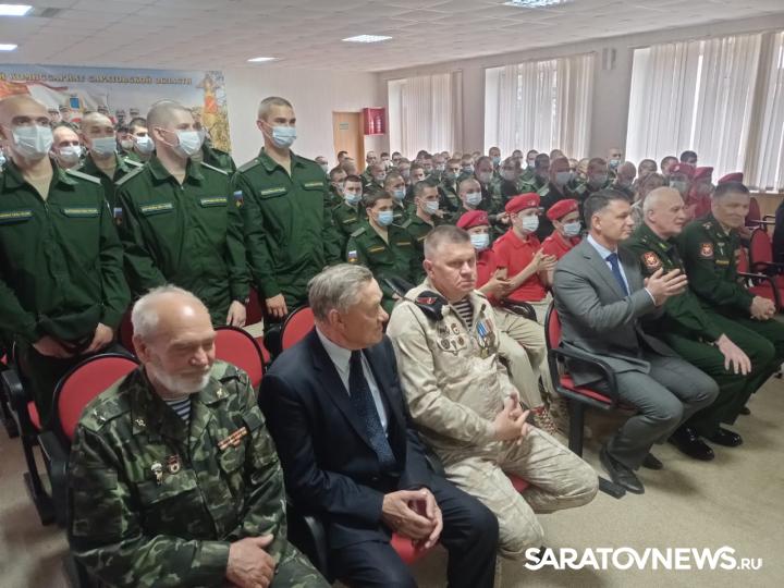 В мероприятии приняли участие заместитель Председателя Правительства области – министр образования области Михаил Орлов, военный комиссар области Андрей Старков, представитель министерства внутренней политики и общественных отношений области Олег Ткачев, председатель Областного совета ветеранов (пенсионеров) войны, труда, Вооруженных Сил и правоохранительных органов Евгений Усков, настоятель Храма Святого благоверного князя Александра Невского иерей Владимир Новиков, председатель регионального отделения ДОСААФ России Саратовской области Сергей Щукин, председатель Саратовского регионального отделения Межрегиональной общественной организации Морских пехотинцев «Тайфун» Михаил Панкратов, юнармейцы, а также призывники.