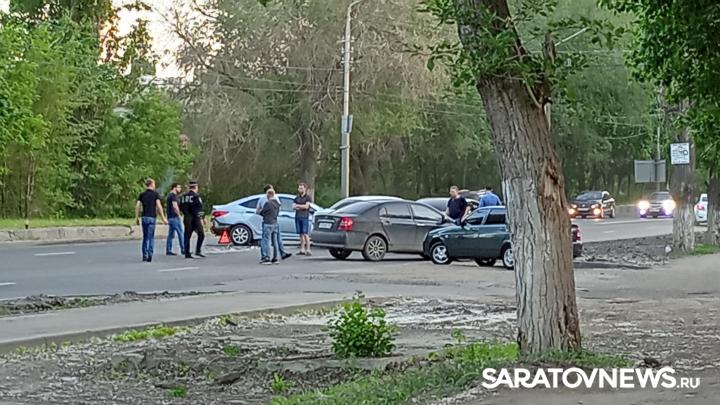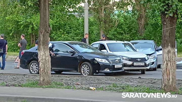 Сегодня вечером, 2 июня, в Заводском районе Саратова произошло тройное ДТП. У дома 67В на Ново-Астоаханском шоссе столкнулись автомобили "Лада Гранта", Hyundai Solaris и Toyota Camry. Об этом рассказали очевидцы.