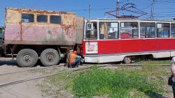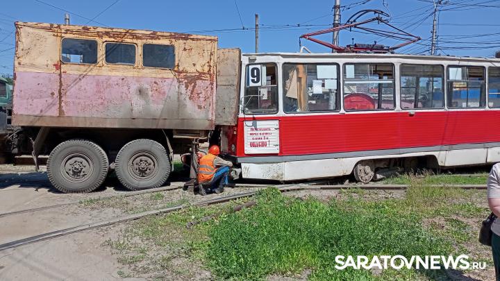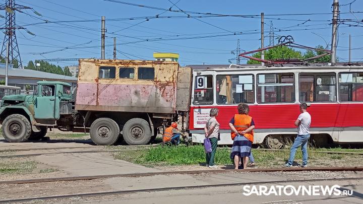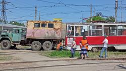 У рынка "Волга" уже скопилось несколько составов. На месте работает ремонтная бригада.