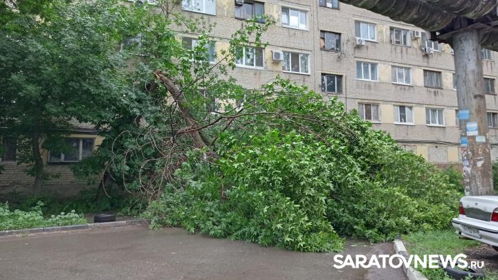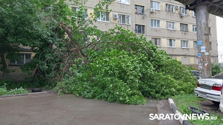 Сегодня, 22 июня, в Заводском районе Саратова прошел сильный ливень. После дождя жители дома 34 по улице Ново-Астраханской услышали треск на улице. Оказалось, это сломался пополам высокий клён. Часть дерева свалилась на внутриквартальную дорогу. Густая крона перегородила жителям выезд из двора.