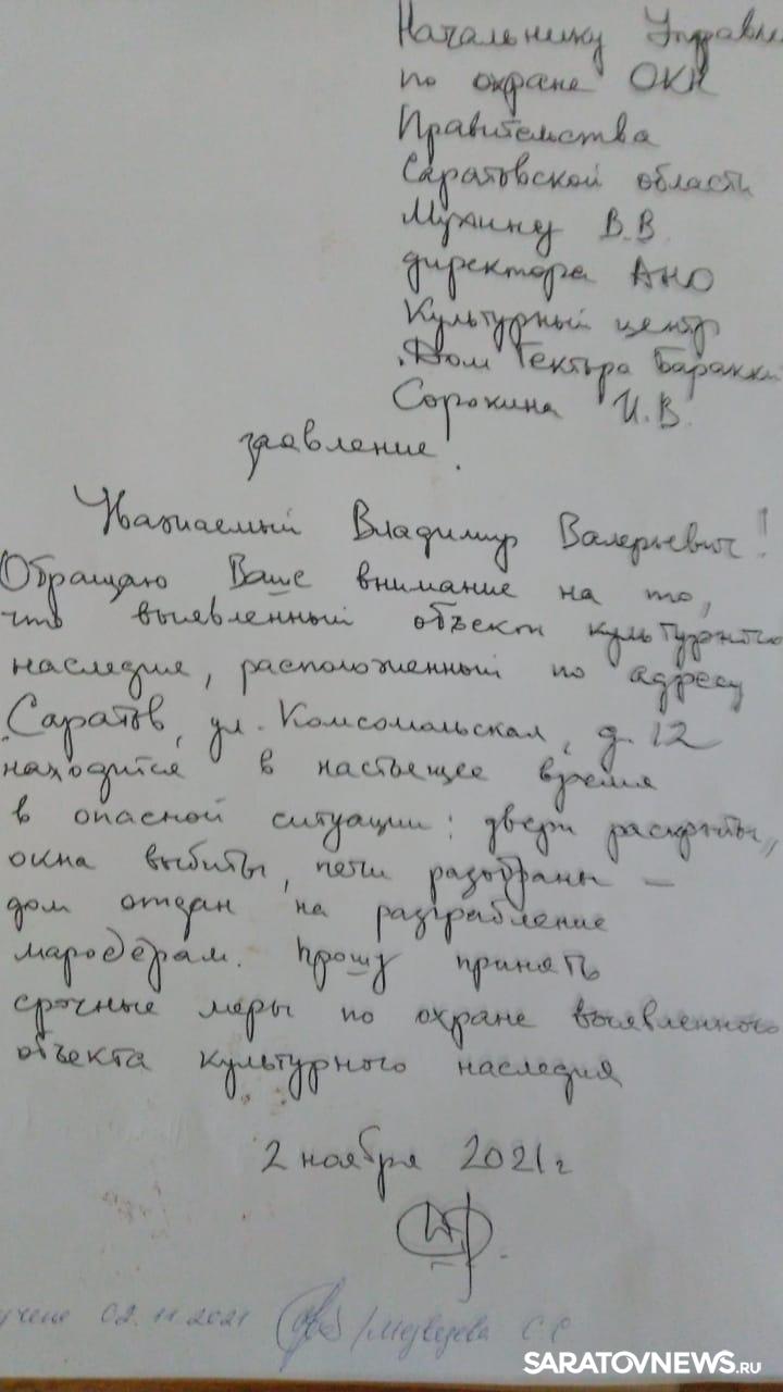 Градозащитный совет при Саратовской областной думе неоднократно обращался к администрации Саратова, администрации Волжского района и в Управление по охране памятников при Правительстве Саратовской области с просьбой провести консервацию подобных объектов.