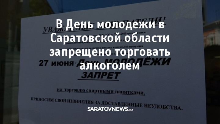 Сегодня, 27 июня, в Саратовской области запрещена розничная продажа спиртных напитков. Это связано с проведением Дня молодежи. Запрет введен согласно закону Саратовской области № 85-3СО от 29.06.2015.