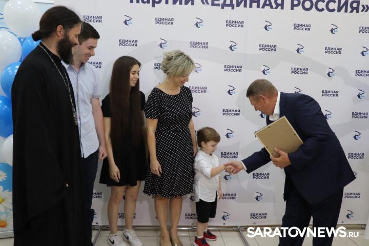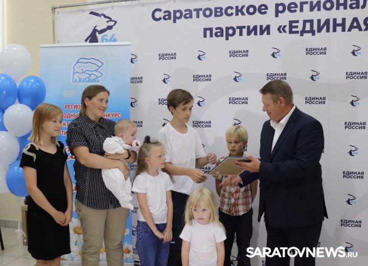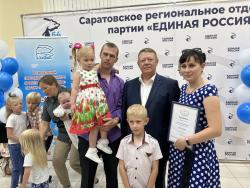 Региональный координатор партийного проекта «Крепкая семья» Алла Фетисова поблагодарила семьи за участие в конкурсе, передала памятные подарки семьям Макаровых из Хвалынска, Неруссковых из Октябрьского района, Рыжовых из Пугачева, Собчук из поселка Лысые Горы, Добрыниных из Балашова.